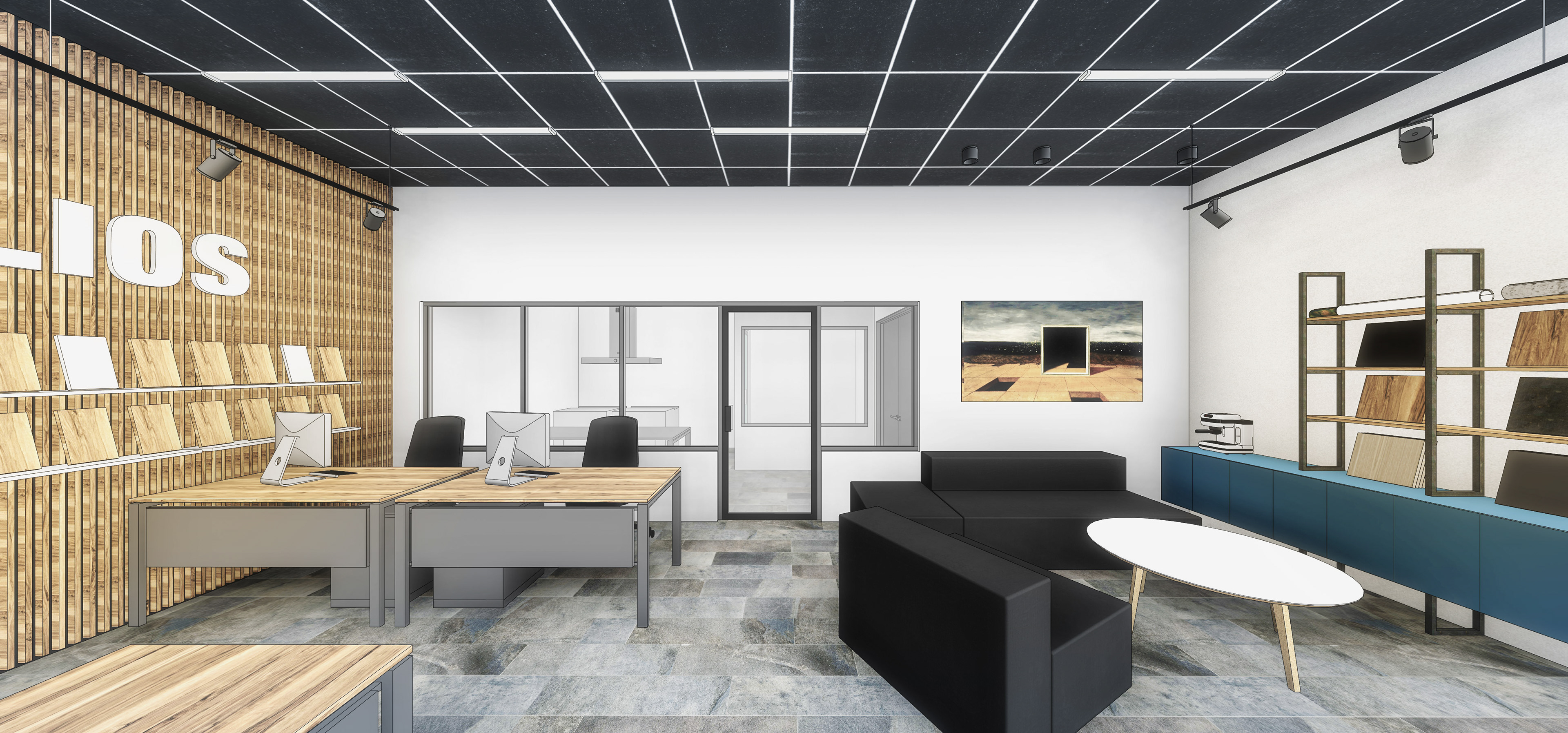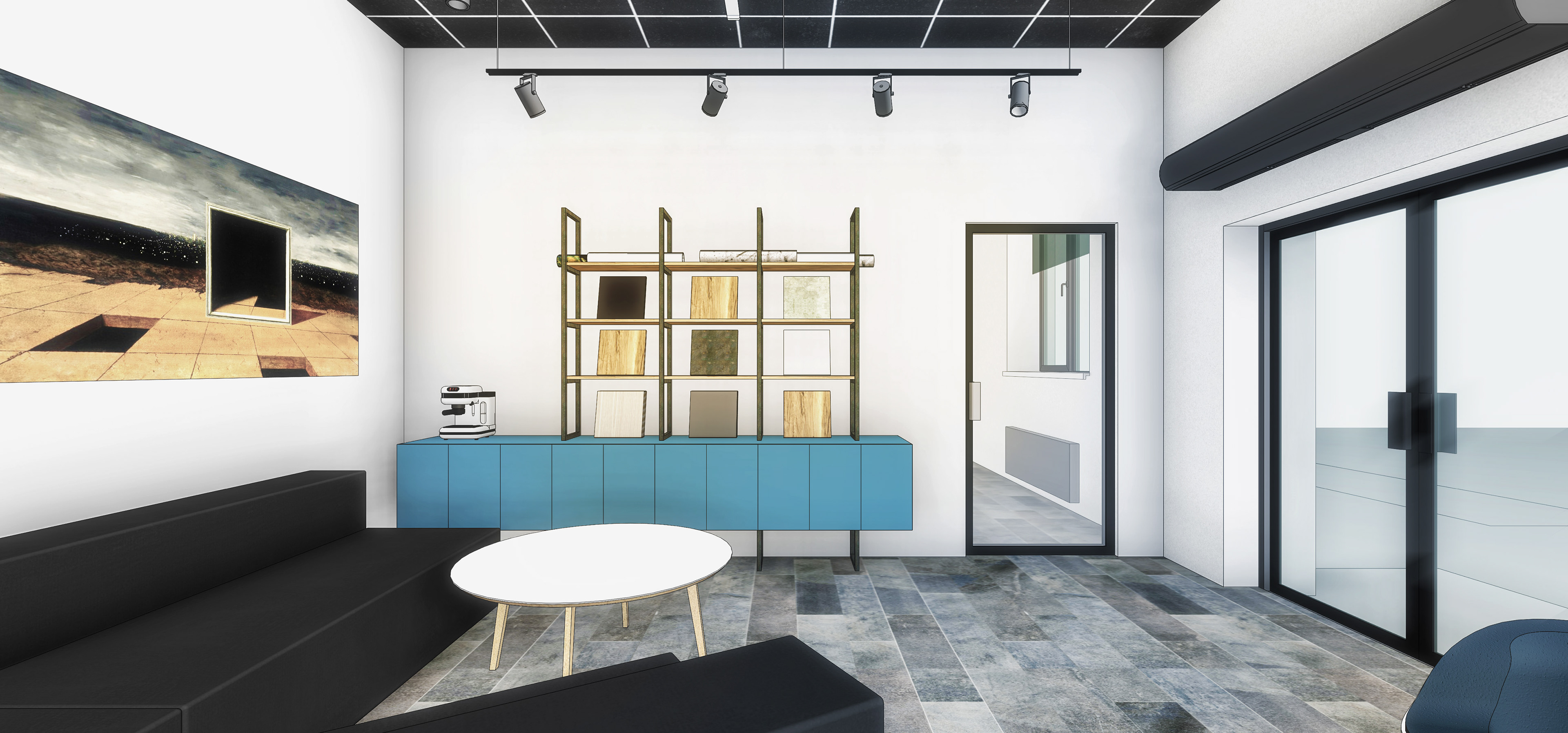 Description: Interior and exterior design project of HELIOS company showroom in Kyiv